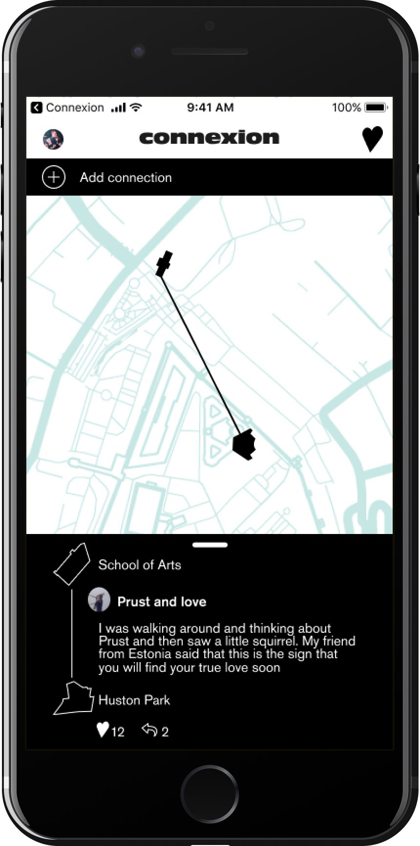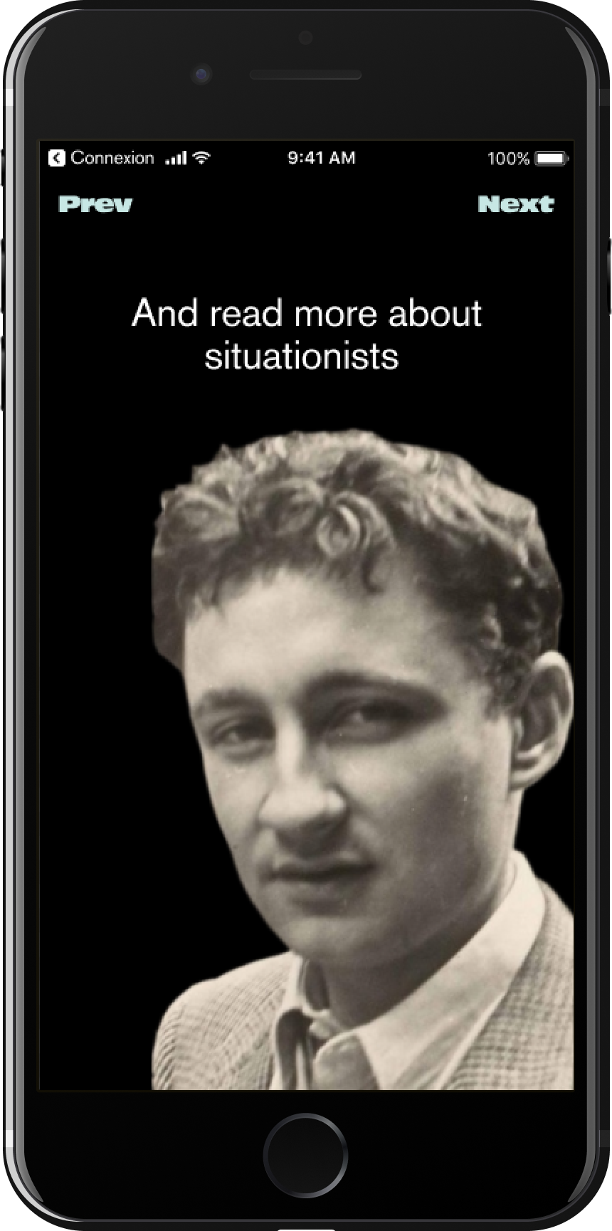 A project based on Guy Debord and situationist practices, in which my two colleagues and I drifted and tried to find out how the phone could help someone drift without dominating, so that the person could actually dissolve into their surroundings.